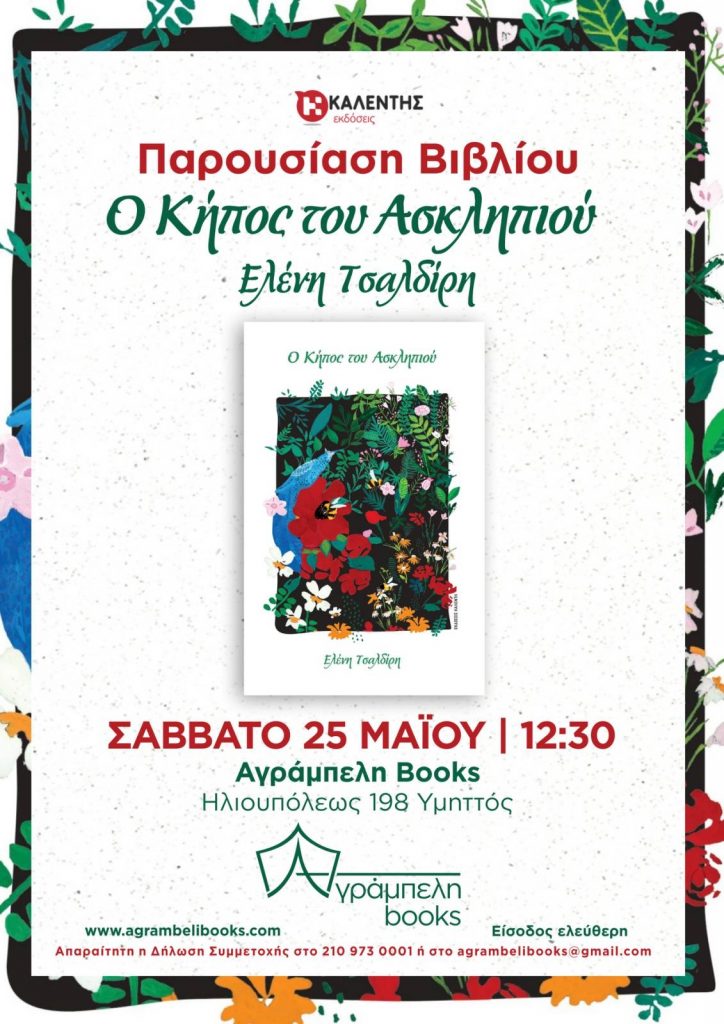 Παρουσίαση του βιβλίου της Ελένης Τσαλδίρη «Ο Κήπος του Ασκληπιού» στο βιβλιοπωλείο «Αγράμπελη» Calendar Προσθήκη στο Ημερολόγιο Προσθήκη σε Timely Ημερολόγιο Προσθήκη σε Google Προσθέστε στο Outlook Προσθέστε στο Apple ημερολόγιο Προσθέστε σε άλλα ημερολόγια Export to XML Πότε: 25/05/2024 @ 10:00 2024-05-25T10:00:00+03:00 2024-05-25T10:15:00+03:00 Πλοήγηση άρθρωνΠροηγούμενο: Η Ελένη Τσαλδίρη («Ο Κήπος του Ασκληπιού») επισκέπτεται το Κολλέγιο Αθηνών (Κάντζα), στο πλαίσιο της διοργάνωσης «Γιορτή της Άνοιξης»Επόμενο: Παρουσίαση του λευκώματος «ΑνθίΖΩ» της Δέσποινας Κατσώχη στον Βόλο